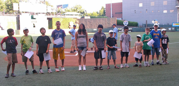 All participants received a Beavers baseball cap and some a United States Chess Federation (USCF) cap. The games were not USCF rated, but were an Oregon Scholastic Chess Federation (OSCF, http://www.oscf.org) 2010 state championship qualifier event, and all games were Northwest Scholastic Rating System rated. Dan Dalthorp and Jeff Dobbins were the organizers for the OSCF. Russell Miller of Camas Washington for the Portland Chess Club (http://www.pdxchess.org/) was the organizer of the first pitch along with Jen Manlig, Account Executive, Group Ticket Sales for the Portland Beavers Baseball club. Attendance for the chess event and the baseball game was hurt by the temperatures on that day of the event, over 100 degrees. The website for the baseball team is www.portlandbeavers.com. |